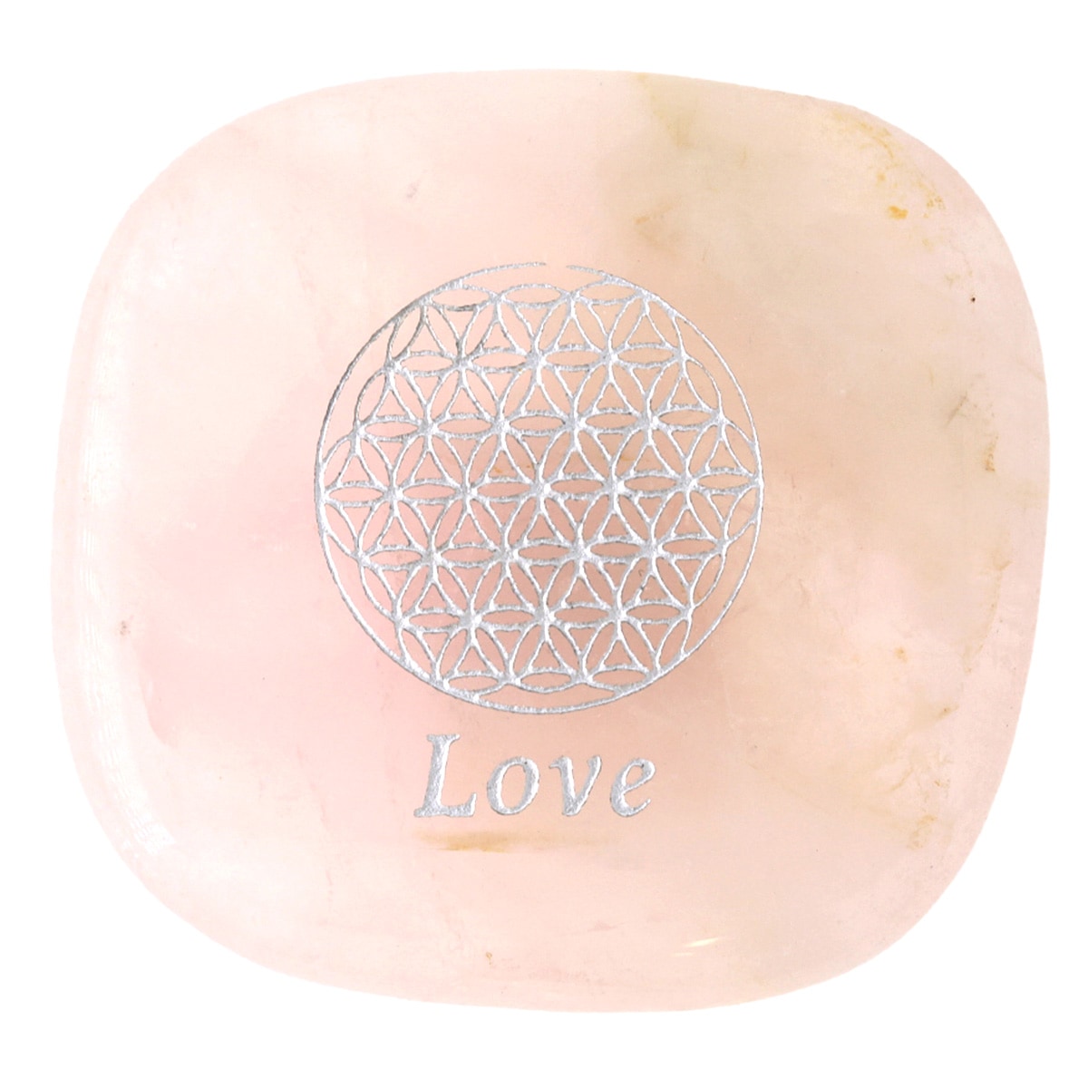 フラワーオブライフとメッセージが刻印された「ビジョンストーン」
