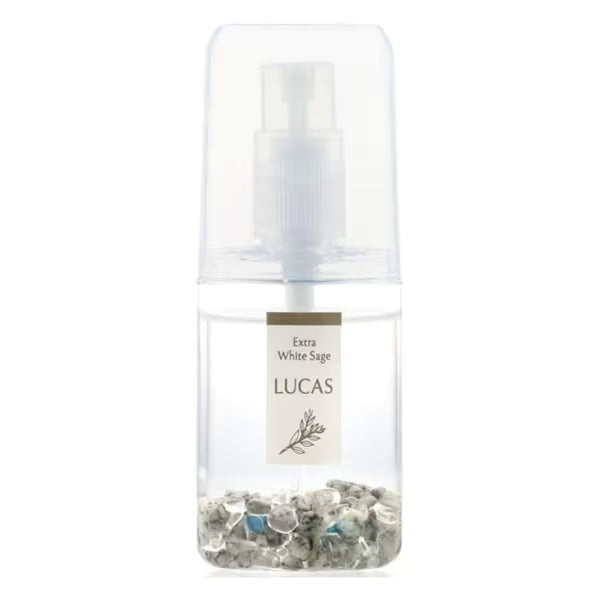 LUCAS(ルカス)は自然界の浄化成分であるホワイトセージから抽出したエッセンシャルオイルを配合した、天然石がキラキラ輝く、浄化・リフレッシュ用スプレーです。