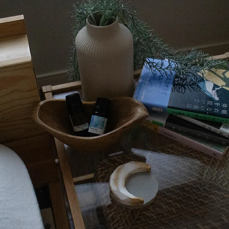 精油を滴下すると1日〜数日香り続けます。 お気に入りの精油ボトルを置いて、 ちょっとしたトレイとしてもお使いいただけます。