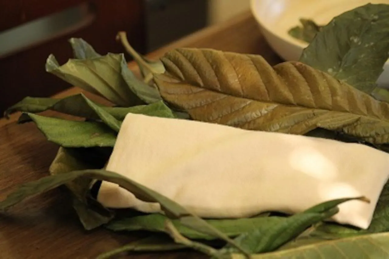 一つ一つ丁寧に野生の枇杷の葉を使用しゆっくりと染めています。
